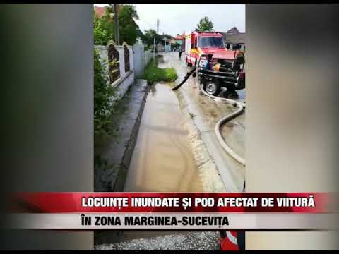 Mai multe locuințe au fost inundate, joi după-amiază, după o rupere de nori în localitatea Marginea. La Sucevița, circulația a fost parțial restricționată pe un pod rutier de pe drumul național 17A după ce un pilon a fost erodat de o viitură. În localitatea Clit, un podeț și trei drumuri comunale au fost afectate de ape.