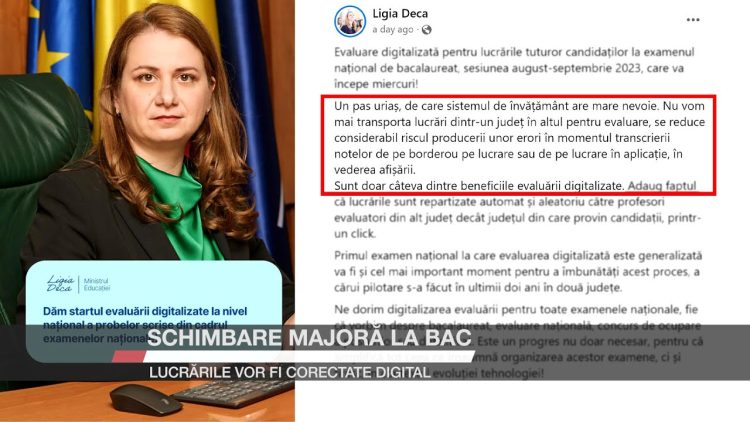 Lucrările candidaților de la sesiunea august-septembrie a examenului de Bacalaureat vor fi corectate digital. După finalizarea examenelor, tezele vor fi scanate și urcate într-o platformă de unde vor fi repartizate automat și aleatoriu către profesori evaluatori din alt județ decât județul din care provin candidații. Anunțul a fost făcut de ministrul Educației, Ligia Deca.