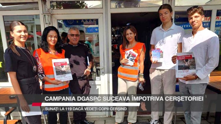 Direcția Generală de Asistență Socială și pentru Protecția Copilului Suceava derulează o campanie împotriva cerșetoriei intitulată ”Locul copiilor e la școală, nu pe stradă!”. Scopul acțiunii este acela de a reduce amplitudinea traficului de persoane și a exploatării cerșetoriei printr-o mai bună informare și implicare a cetățenilor, precum și prin activități în care vor fi implicați copiii care cerșesc și părinții lor. ”Dacă vezi un copil cerșind sau părinți cu copii în brațe la cerșit, nu ezita, sună la Telefonul Copilului:119”, este unul dintre mesajele campaniei.