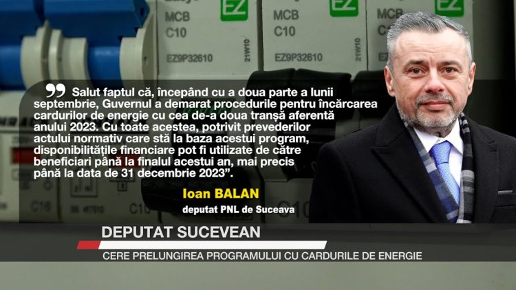 Deputatul liberat de Suceava Ioan Balan a cerut ministrului Investițiilor și Proiectelor Europene să caute soluții pentru extinderea programului cu cardurile de energie și în anii următori. Parlamentarul argumentează această solicitare datorită eficienței pe care programul a dovedit-o pentru familiile aflate în situații de vulnerabilitate financiară.