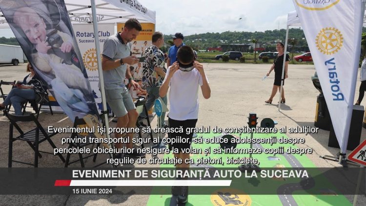 Rotary Club Suceava Cetate, în colaborare cu Fundația Siguranța Auto, Crucea Roșie Română filiala Suceava și specialistul Anca Nicoară, organizează un eveniment dedicat siguranței auto. Între orele 10:00 și 16:30, pe esplanada Casei de Cultură Suceava, participanții vor beneficia de consultanță, testări și instalări de scaune auto pentru copii, demonstrații de prim ajutor, simulări de impact frontal, trasee cu percepție vizuală deformată și scenarii VR.