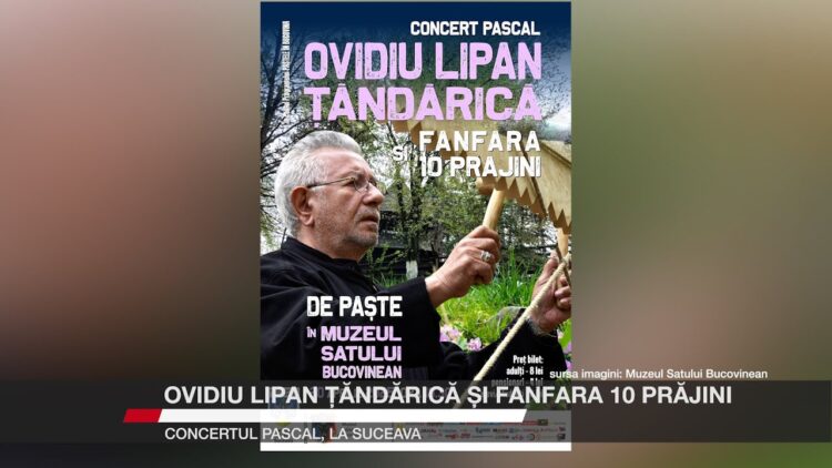 Ovidiu Lipan Țăndărică și Fanfara 10 Prăjini revin la Suceava pentru a susține un spectacol, chiar în prima zi de Paște. Concertul Pascal va avea loc duminică, 20 aprilie, de la ora 13:30, la Muzeul Satului Bucovinean. Tot atunci, în Casa Ostra din incinta muzeului, vizitatorii pot admira expoziția temporară „Simboluri Pascale în Bucovina”, ce reunește ouă încondeiate cu motive tradiționale și obiecte specifice sărbătorilor pascale din această zonă. Muzeul Satului Bucovinean va fi deschis în intervalul 10:00 – 18:00 (ultima intrare la 17:30), iar accesul se face pe baza unui bilet: 8 lei pentru adulți, 4 lei pentru pensionari și 2 lei pentru elevi și studenți. Concertul și expoziția fac parte din seria de evenimente organizate de Consiliul Județean Suceava, în cadrul ediției 2025 a programului „Paștele în Bucovina”.