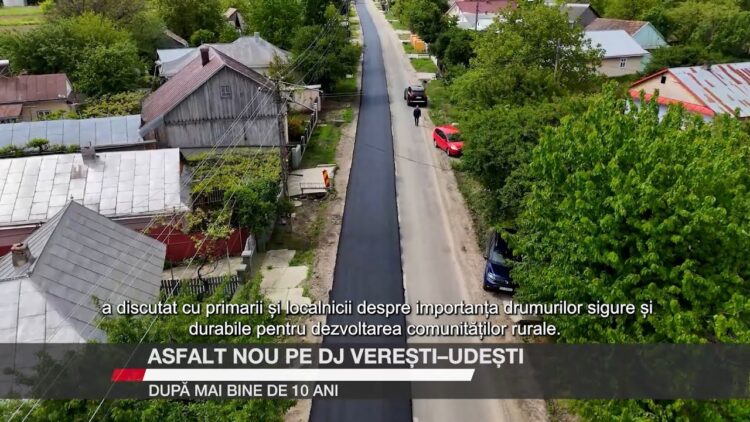 Au început lucrările de asfaltare pe un tronson de aproximativ 4 kilometri al drumului județean dintre localitățile Verești și Udești. Drumul nu a mai beneficiat de reparații capitale de peste un deceniu, iar intervenția actuală presupune turnarea unui covor asfaltic nou.