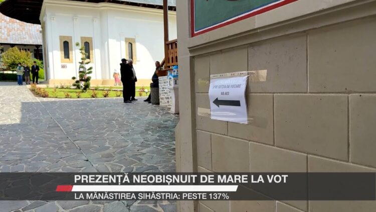Credincioșii care au participat duminică la slujba de la Mănăstirea Sihăstria din județul Neamț au avut ocazia să și voteze tot în incinta lăcașului de cult. Este vorba despre trapeza mănăstirii, acolo unde a fost amenajată o secție de votare. Mulți dintre pelerinii veniți din alte zone ale țării au ales să îmbine rugăciunea cu un gest civic și au votat după terminarea slujbei și după ce au stat la masa de prânz. Potrivit datelor Autorității Electorale Permanente, la această secție s-a înregistrat o prezență de 137,57%.