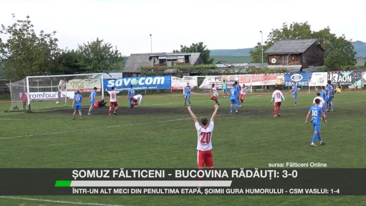 În play-out-ul Ligii a 3-a de fotbal, Șomuz Fălticeni a învins Bucovina Rădăuți cu scorul de 3-0. Într-un alt meci din penultima etapă, Șoimii Gura Humorului a pierdut în fața liderului CSM Vaslui cu 1-4.