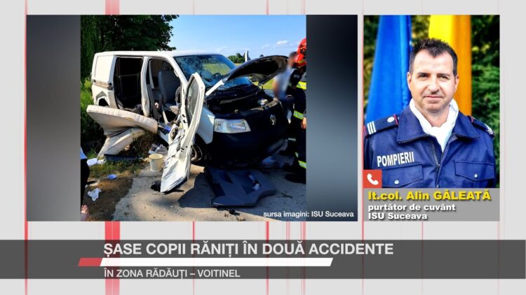 Duminică după-amiază, două accidente petrecute în mai puțin de 20 de minute în zona Rădăuți – Voitinel au dus la rănirea a șase copii. Unul dintre accidente a fost provocat de un adolescent de 17 ani, care ar fi luat mașina tatălui fără permisiune pentru a se plimba cu prietenii. Toate victimele au fost transportate la spital pentru îngrijiri medicale, iar adolescentul riscă dosar penal.