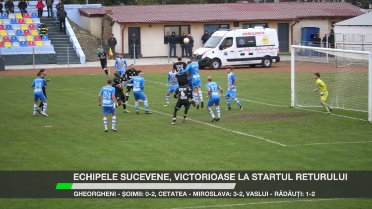 Echipele sucevene au obținut victorii pe linie în prima etapă din returul Ligii a 3-a. Șoimii Gura Humorului a câștigat cu 2-0 la Gheorgheni, Cetatea Suceava a învins Știința Miroslava cu 3-2 pe stadionul Areni, iar Bucovina Rădăuți s-a impus cu 2-1 la Vaslui.