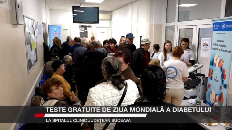 De Ziua Mondială a Diabetului, sucevenii au avut acces la teste gratuite la Centrul Antidiabetic al Spitalului Județean Suceava. Acțiunea s-a desfășurat între orele 08:00 și 13:00 și a atras numeroase persoane interesate de prevenție și control. Echipa coordonată de dr. Claudiu Cobuz a oferit testări ale glicemiei, hemoglobinei glicozilate, măsurători corporale și materiale educative pentru îngrijirea piciorului diabetic. La eveniment s-au alăturat și studenți de la specializarea Nutriție și dietetică, care au promovat un stil de viață echilibrat.