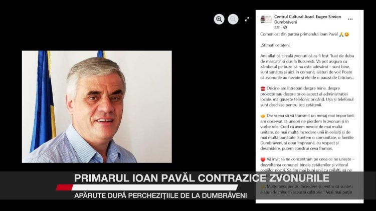 Circulă afirmații potrivit cărora primarul Ioan Pavăl ar fi fost ridicat de forțe speciale și transportat la București în urma perchezițiilor desfășurate la Dumbrăveni. Edilul a transmis un comunicat în care precizează că se află în localitate, că este bine și că nu a fost implicat în nicio procedură de acest tip, menționând că poate fi contactat oricând, la telefon sau la birou. Contextul apariției acestor afirmații este reprezentat de perchezițiile efectuate de polițiști la primărie, la locuința sa și la cea a secretarului Mihai Chiriac, într-un dosar privind obținerea de documente românești pentru cetățeni ucraineni, moldoveni și ruși. Cei doi admit că au luat străini în spațiu, dar susțin că au respectat legea. Ancheta este în derulare. Situația arată cum relatările spectaculoase circulă mai rapid decât informațiile verificate, deoarece sunt mai atractive emoțional. În astfel de situații, adevărul – de regulă mai simplu și mai puțin dramatic – poate fi acoperit de interpretări care nu reflectă realitatea. Verificarea informațiilor în mai multe surse rămâne esențială pentru a evita propagarea unor narațiuni construite, care pot distorsiona înțelegerea unui caz aflat în curs.