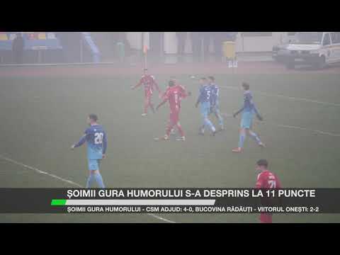 Șoimii Gura Humorului a învins cu 4-0 formația CSM Adjud, în etapa a 15-a a Ligii a 3-a. Victoria menține echipa antrenată de Valentin Suciu pe primul loc, cu un avans de 11 puncte față de a doua clasată, Cetatea Suceava.