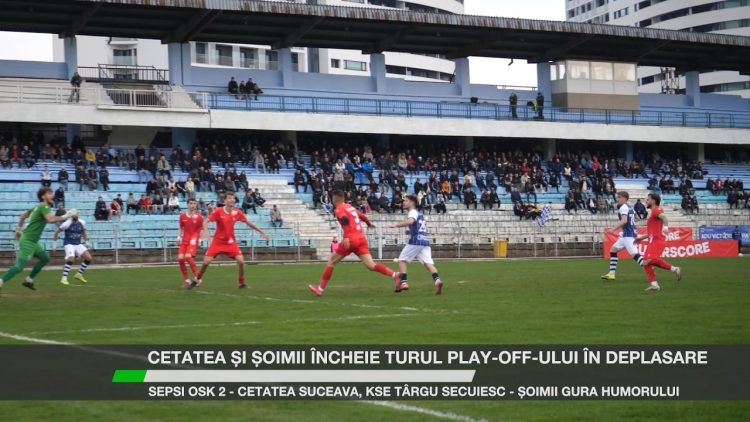 Ultima etapă din turul play-off-ului Ligii a 3-a de fotbal programează meciuri în deplasare pentru Cetatea Suceava și Șoimii Gura Humorului. Cetatea va juca pe terenul celor de la Sepsi OSK Sfântu Gheorghe 2, iar humorenii vor întâlni echipa KSE Târgu Secuiesc.