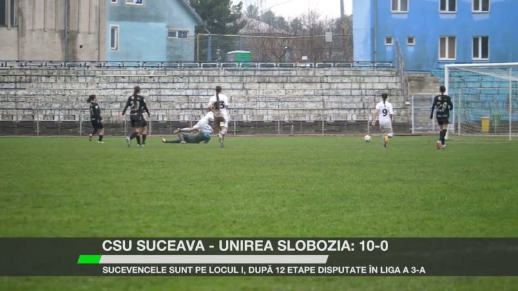 Echipa feminină de fotbal CSU Suceava a câștigat cu scorul de 10-0 meciul cu Unirea Slobozia, din cadrul etapei a 12-a a Ligii a 3-a. Jucătoarele antrenate de Marcel Irimie și Bogdan Misiuc sunt pe primul loc al clasamentului, iar în etapa următoare vor juca în deplasare cu Dinamo București.